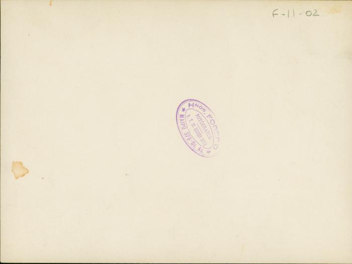 sello impreso en tinta violácea en el centro del dorso: "Hnos. Forero. Maipú 379 - Bs.As. Fotógrafos U.T.31 Retiro 3954"